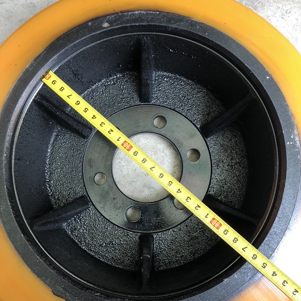 Bánh lái -bánh chạy kích thước 343x114, lỗ tâm 80mm, 6 lỗ ốc lắp trên xe nâng điện đứng lái hiệu Hangcha. Sản phẩm mới 100%, nhập khẩu.